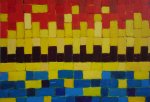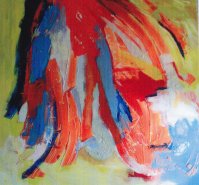Soms ontstaat een werkstuk intuïtief en laat ik me leiden door wat ontstaat met kleuren die passen bij de beleving van het moment.